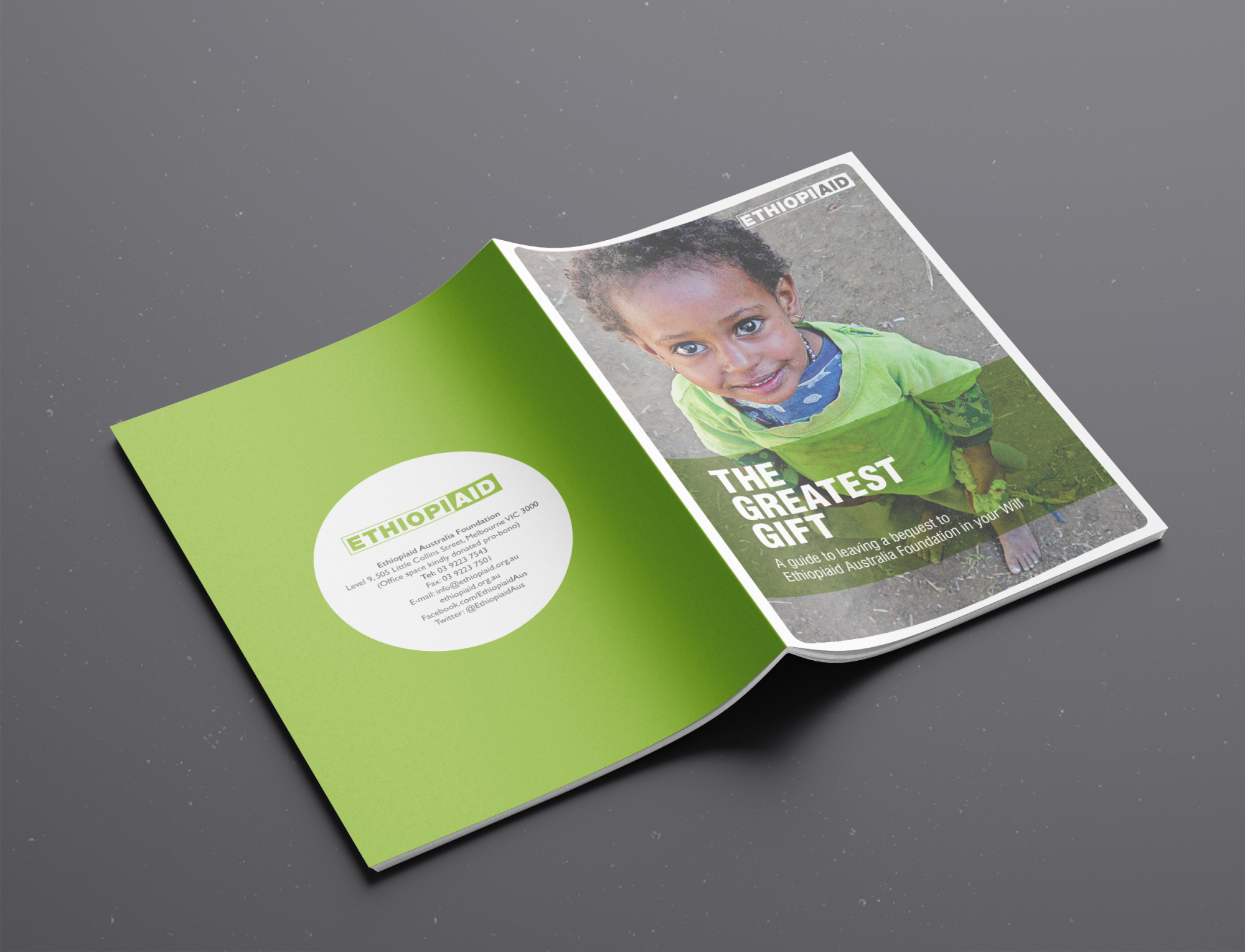 Ethiopiaid Australia bequest appeal booklet design.