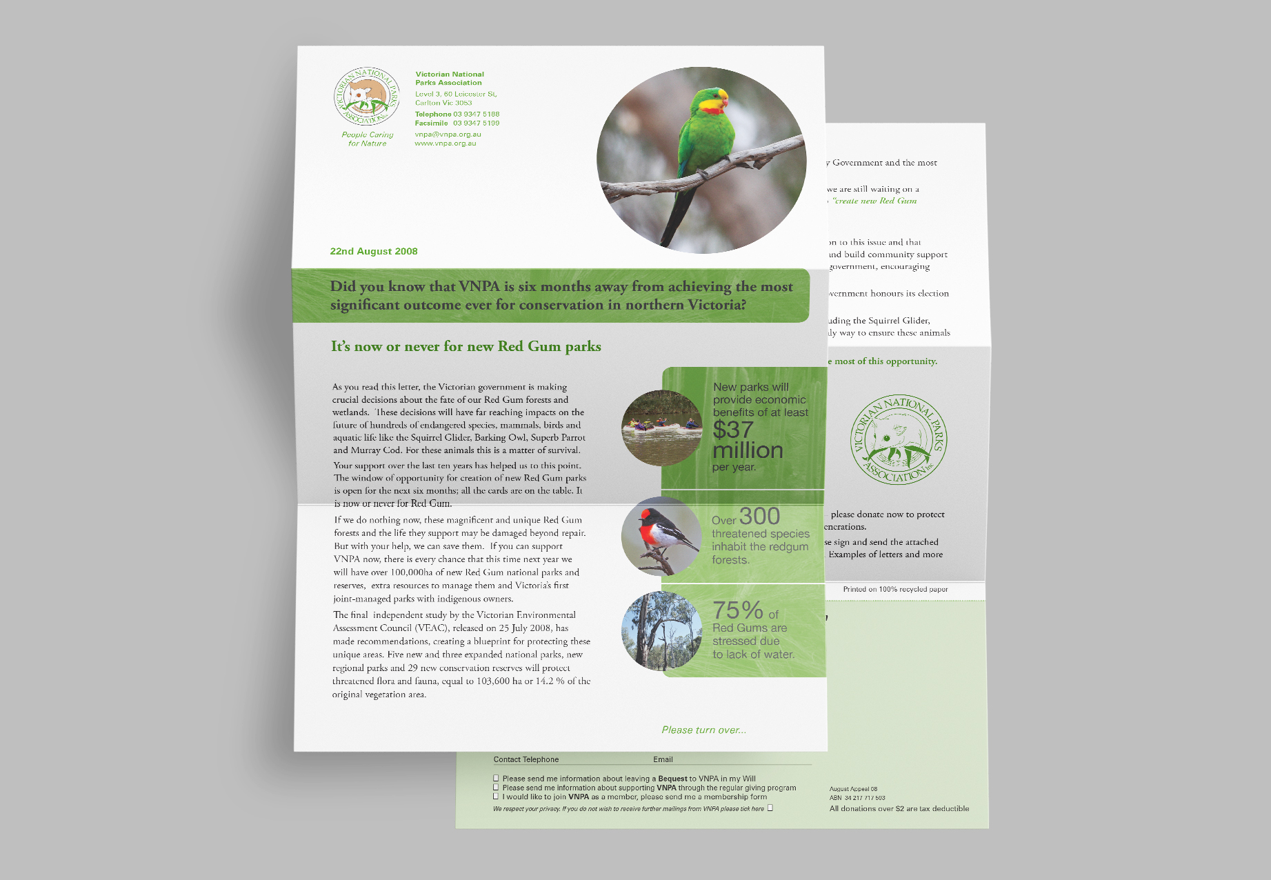 VNPA Appeal Victorian National Parks Association appeal design consisting of a letter, brochure & fact sheet. Hide Content